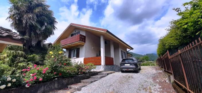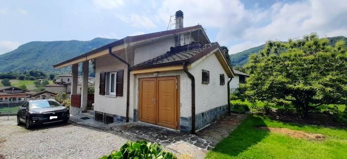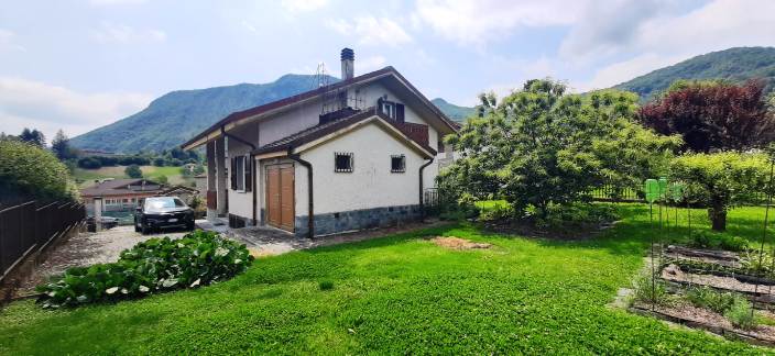 A Val Brembilla nella graziosa e servita frazione Laxolo, posta a circa 550m d'altitudine, vendiamo introvabile villa singola immersa in circa 850mq di terreno di proprietà, perfettamente pianeggiante. L'immobile è disposto su 3 livelli cosi' di seguito descritti: a piano seminterrato, grande locale deposito, lavanderia, 2 cantine spaziose. Al piano terra, ingresso, soggiorno, cucina, bagno, 2 camere da letto matrimoniali, 2 grandi terrazzi, box. Al primo ed ultimo piano mansardato, 2 camere da letto con rispettivi sottotetti, bagno, 2 balconi panoramici. La villa si presenta in buono stato di manutenzione, i serramenti sono con vetro triplo, il riscaldamento è mediante due stufe a pellet con possibilità di allacciamento alla rete del gas metano. Viene venduta completa dell'arredo esistente ad esclusione degli effetti personali. Meravigliosa vista panoramica ed ottima esposizione al sole, rendono la villa particolarmente appetibile. Classe energetica G, EP gl nren 333,29 kWh/mqa.