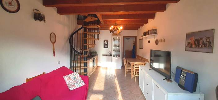 Ad Algua e più precisamente nella frazione Rigosa, posta a circa 650m d'altitudine, a pochi chilometri da Selvino, vendiamo in villini edificati a fine anni 90, appartamento su due livelli, libero 2 lati cosi' di seguito descritto: a piano terra, ingresso indipendentte, soggiorno con camino termoventilato, angolo cottura, bagno, terrazzo. Al soprastante piano sottotetto, unico grande ambiente con diversi posti letto. Superficie complessiva pari a circa 40mq commerciali. Box di proprietà posto al piano terra. L'immobile si presenta in ottimo stato di manutenzione, è dotato di serramenti con vetri doppi, riscaldamento autonomo con termoconvettori elettrici e possibilità di allacciamento alla rete del gas metano già utilizzato per fuochi della cucina e produzione di acqua calda. Ottima vista panoramica. Viene venduto arredato ad esclusione degli effetti personali. Classe energetica G, Ep gl nren 333,29 kWh/mqa.