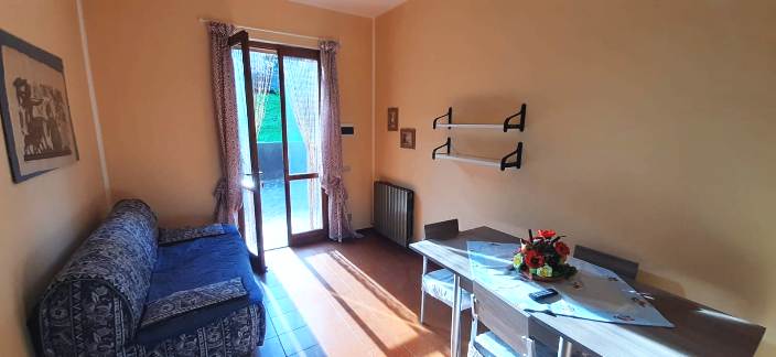 Ad Algua nella frazione Rigosa, posta a circa 650m d'altitudine, vendiamo in signorile palazzina, grazioso appartamento posto al piano terra, composto da ingresso indipendente, soggiorno con angolo cottura, bagno, camera da letto matrimoniale, balcone panoramico. L'appartamento misura circa 40mq commerciali, è dotato di impianto di riscaldamento autonomo a gas metano. Viene venduto arredato ad esclusione degli effetti personali. Classe energetica G, Ep gl nren 333,29 kWh/mqa