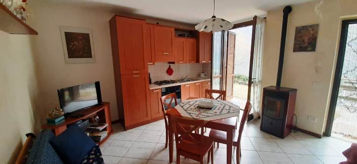 A Moio de Calvi, graziosa località turistica dell'Altavalle Brembana, a pochi chilometri dagli impianti sciistici di Carona, Foppolo, Piazzatorre, Valtorta, vendiamo in recente residence con splendida vista panoramica, magnifico appartamento posto al piano terra, composto da ingresso indipendente, soggiorno con angolo cottura, bagno, camera da letto matrimoniale, ampia cantina, grande giardino privato perfettamente pianeggiante, box. L'appartamento è dotato di riscaldamento autonomo a gas metano, serramenti con vetri doppi, arredo su misura ad esclusione degli effetti personali. Classe energetica F, Ep gl nren 322,11 kWh/mqa.